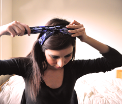 Pásalo por debajo de tu pelo, dejando tu mano en medio del extremo que está doblado.