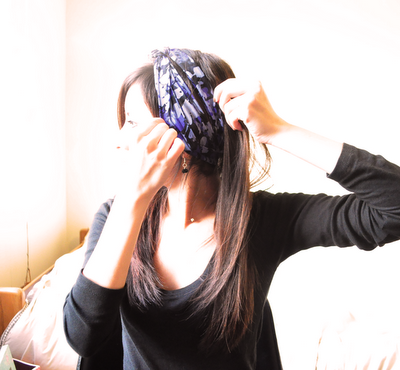 Pero en estas imagenes el ancho del retazo de tela era de 40 cms, se ve mucho más lleno y recoge más.* Puedes usar el turbante debajo de todo el pelo pasándolo por la nuca o puede ser arriba de todo el pelo y la nuca. Yo lo uso debajo de todo mi pelo porque si lo hago por arriba se me chorrearía y no aguantaría tanto tiempo bien hecho, sobre todo por que mi pelo es muy resbaladizo.Ahora sí, sin mas ni mas en 6 pasos.. tu turbante!